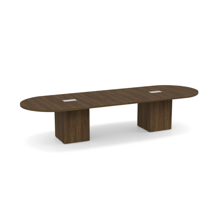 The Pacific Racetrack Conference Table with Cube Base features a classic racetrack silhouette with a durable laminate surface built for everyday commercial performance. Its hollow cube bases provide stable support while offering the ability to discreetly conceal power and data for a clean, organized workspace. A popular choice for modern conference rooms and collaborative environments. Offered in a range of sizes and finish options to complement your space.