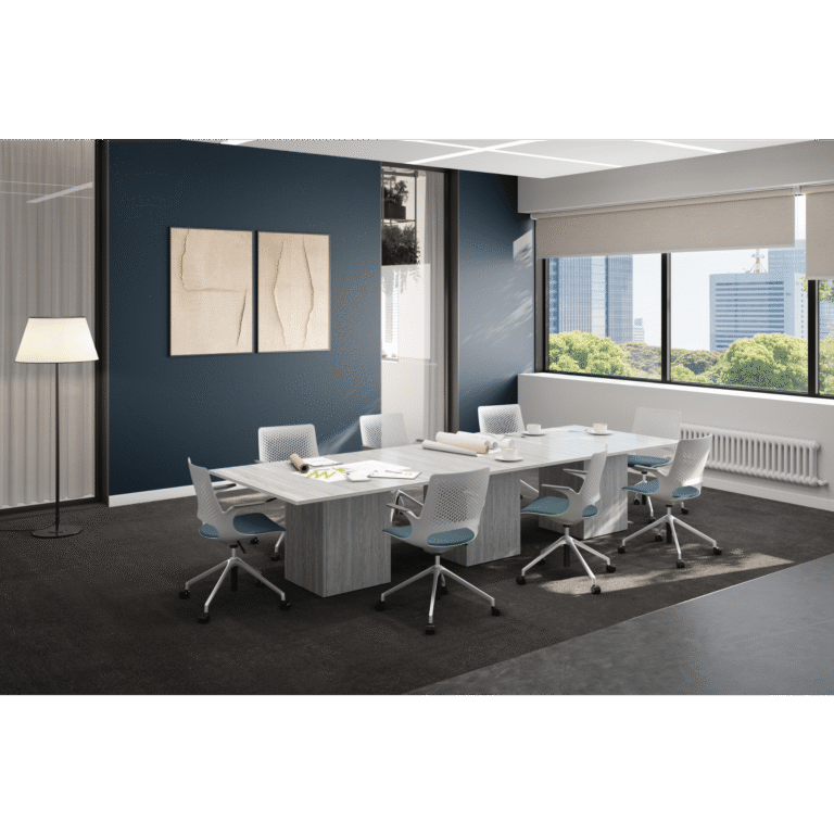 The Pacific Rectangular Conference Table with Cube Base delivers a clean, classic silhouette built for structured boardrooms and corporate meeting rooms. Four-foot square tops combine seamlessly to create custom-length boardroom tables, offering flexible configuration for any space. Built with a durable laminate surface, 1.5″ thick PVC Tough Edge, and cube base with integrated cable and wire concealment for a clean, professional look. Available in 4-foot increments across a range of sizes and laminate finish options to suit any commercial office environment.