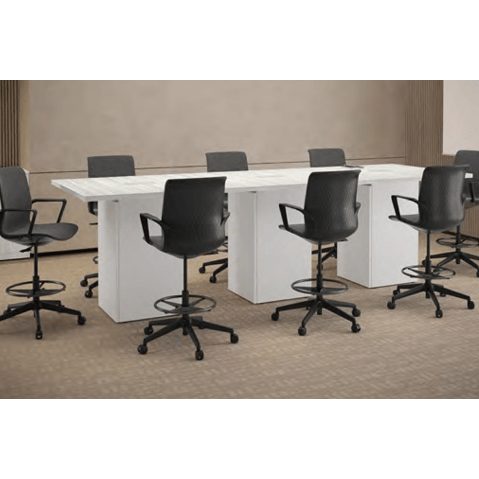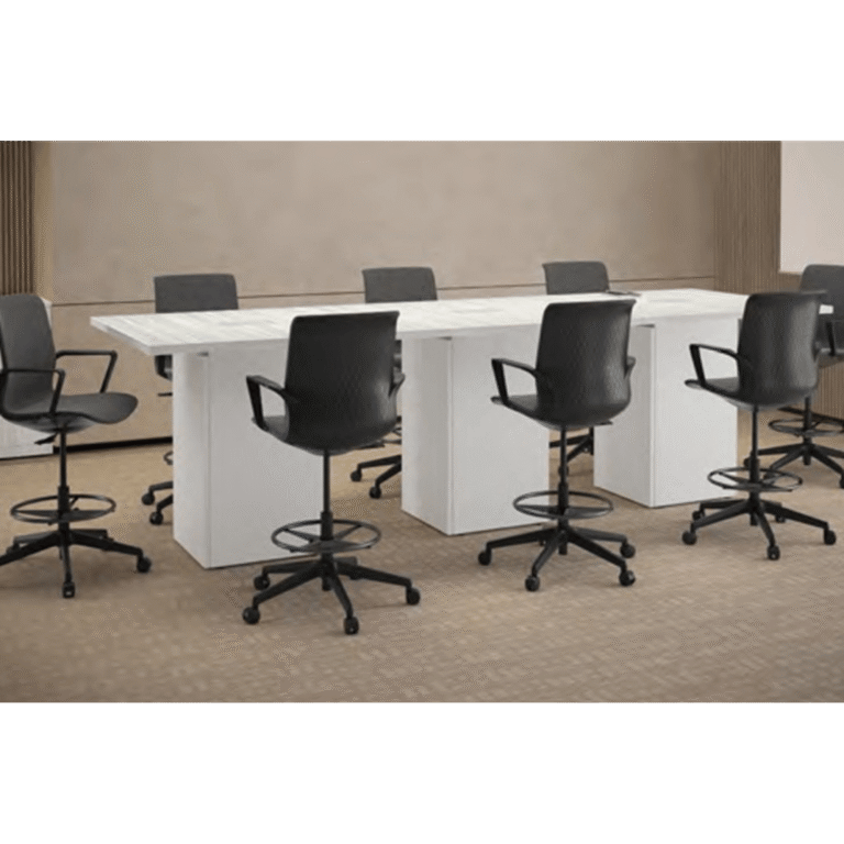 The Pacific Rectangular Conference Table with Tall Cube Base delivers a clean, classic silhouette built for modern bar-height meeting and collaboration spaces. Four-foot square tops combine seamlessly to create custom-length boardroom tables at a comfortable 42″ standing height, offering flexible configuration for any space. Built with a durable laminate surface, 1.5″ thick PVC Tough Edge, and a tall cube base featuring a single-door access panel for convenient cable and equipment management. Available in 4-foot increments across a range of sizes and laminate finish options to suit any commercial office environment.
